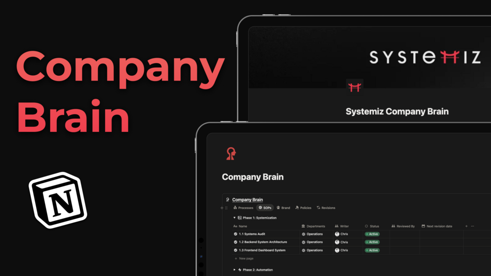 And inside this Company Brain you'll find the entire Systemization Process turned into 11 SOPs you can follow to Systemize & Automate your own business.