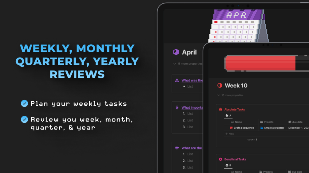 Weekly, Monthly, Quarterly & Yearly Reviews